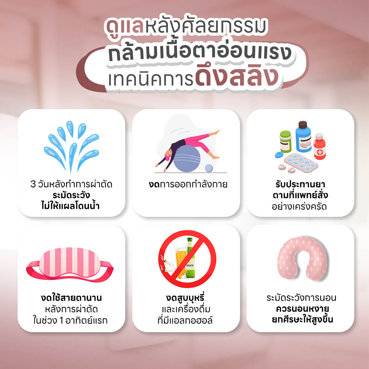 ดูแลหลังศัลยกรรมกล้ามเนื้อตาอ่อนแรงเทคนิคดึงสลิงอย่างไร