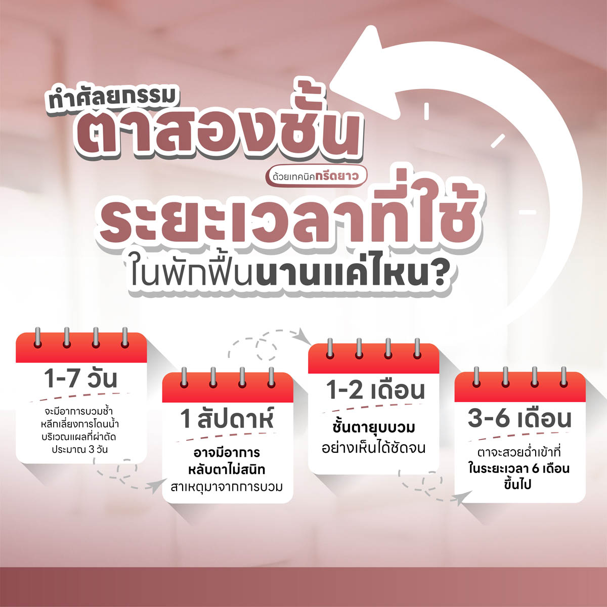 - 3-6 เดือน: ตาสวยฉ่ำ แผลจางลง เผยชั้นตาเนียนสวย